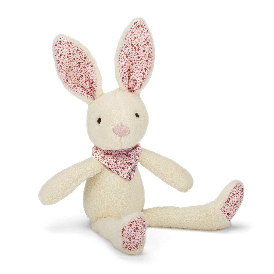 This super soft butter-cream bunny has the cutest floral print ears and feet, and matching bandana.