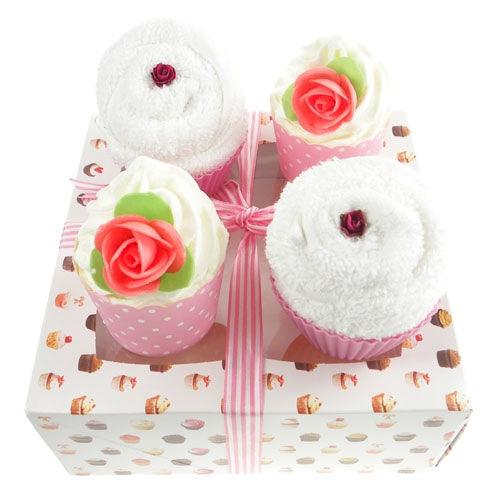 This special cupcake box is filled with pamper facecloths and two pink bath bombs made with shea and cocoa butter and essential oils. A special treat that will leave skin beautifully scented and soft.The cupcakes are packaged in a cupcake box, with ribbon and wrapped in tissue paper with contents card. A unique pamper gift "For Her" that will be adored.