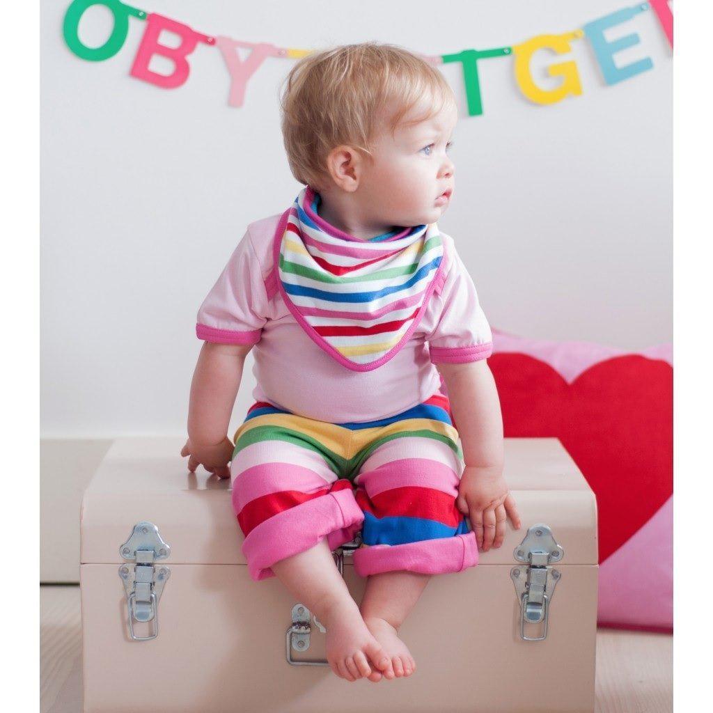 This stripey coloured Dribble Bib with pink trim is made with 100% organic cotton, super soft and lined with towelling for extra absorbency.