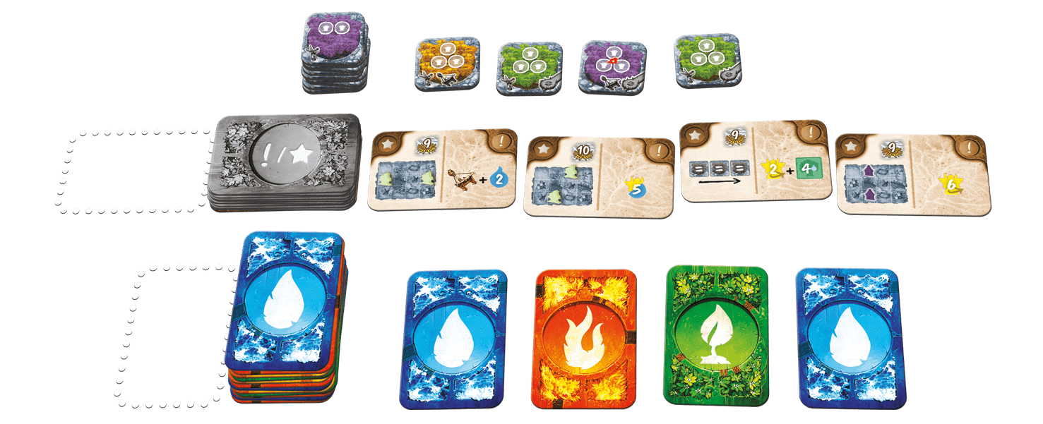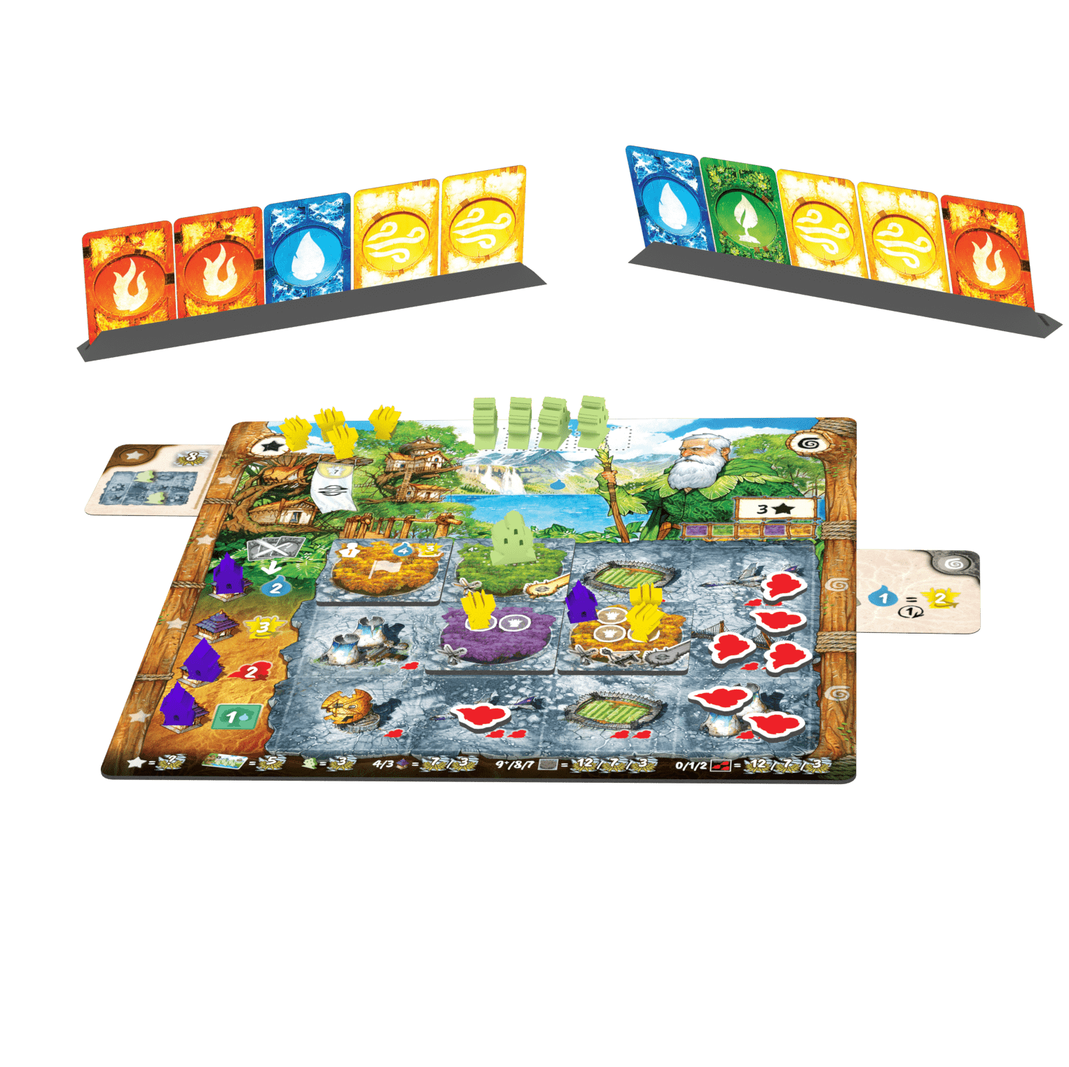 Send your wind riders to explore, gather resources, and complete objectives to unlock your guide's special abilities and improve your tribe's powers. Just be sure to build that 5th village before anyone else in order to win based on points earned through pollution levels, village and temple construction, forest layout, and other objectives.