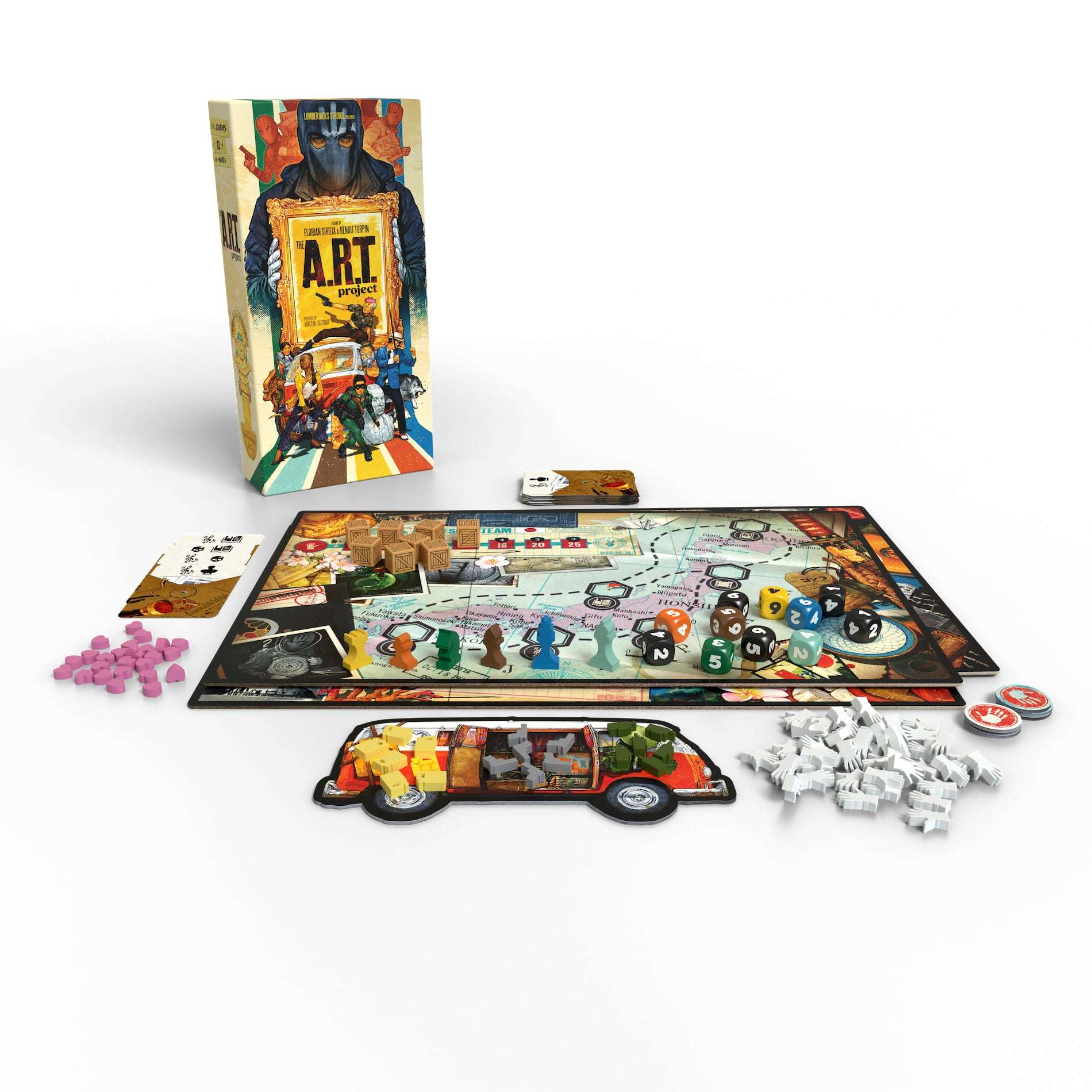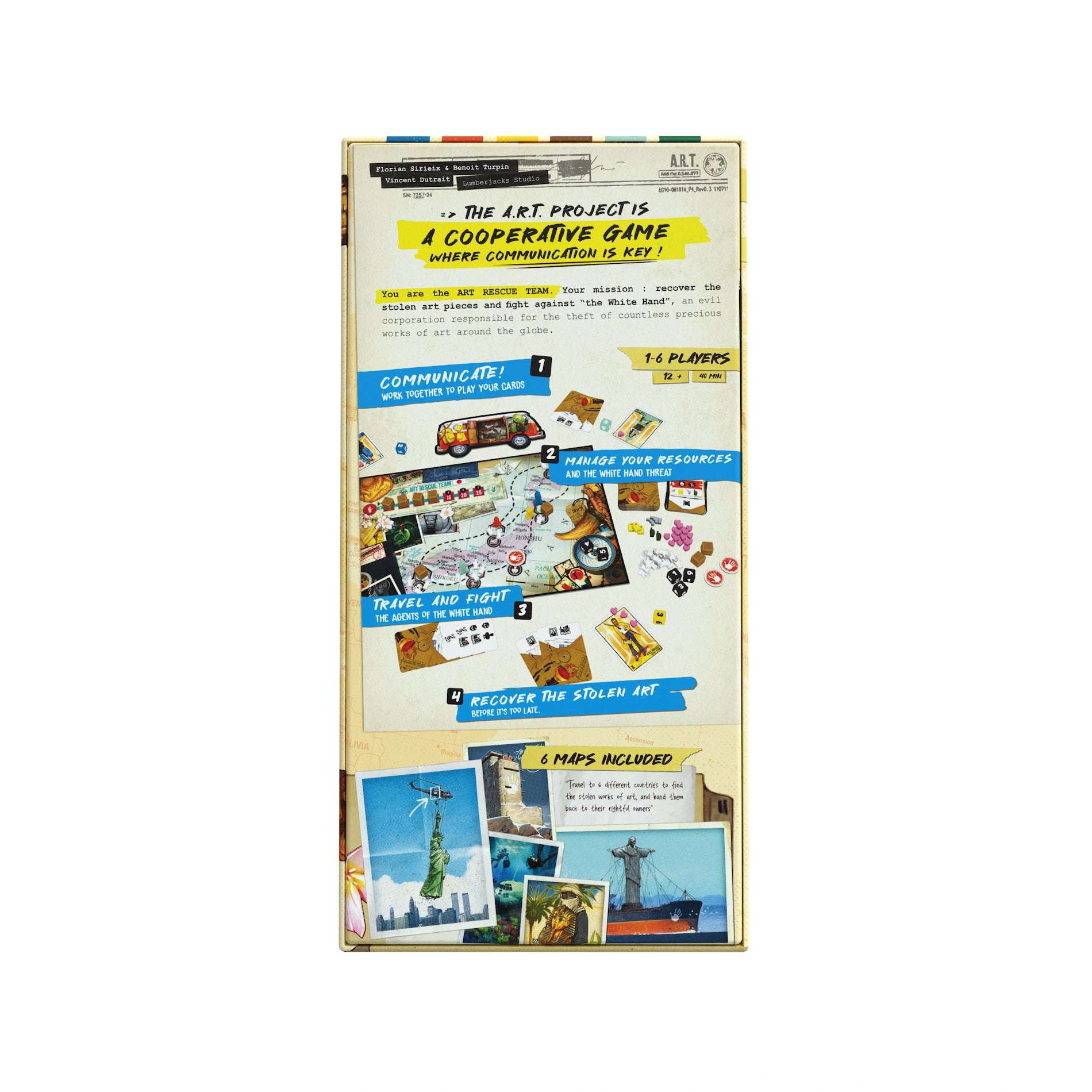 Can you gather enough clues in time to put an end to this cultural robbery? Join forces in the cooperative game, The A.R.T. Project, where each player draws two mission cards per round and collaborates to decide the round's order. Pool your resources, including jerrycans, weapons, allies, and clues, to make strategic moves and save seven works before the mission deck runs out.