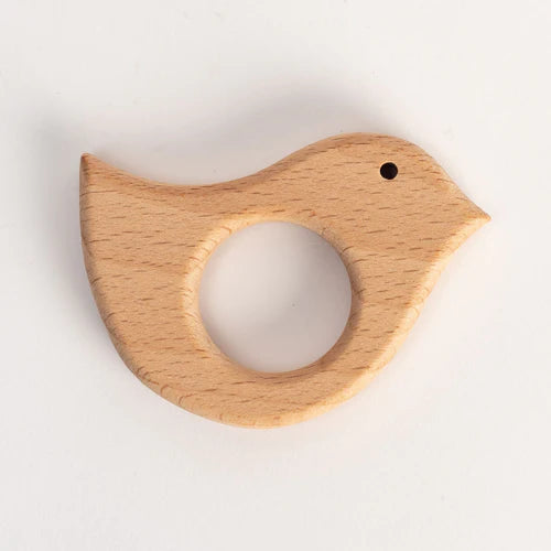 Dieser tolle Beißring aus Holz von Bambino By Juliana hat die Form eines süßen Vogels – perfekt für zahnende Babys.