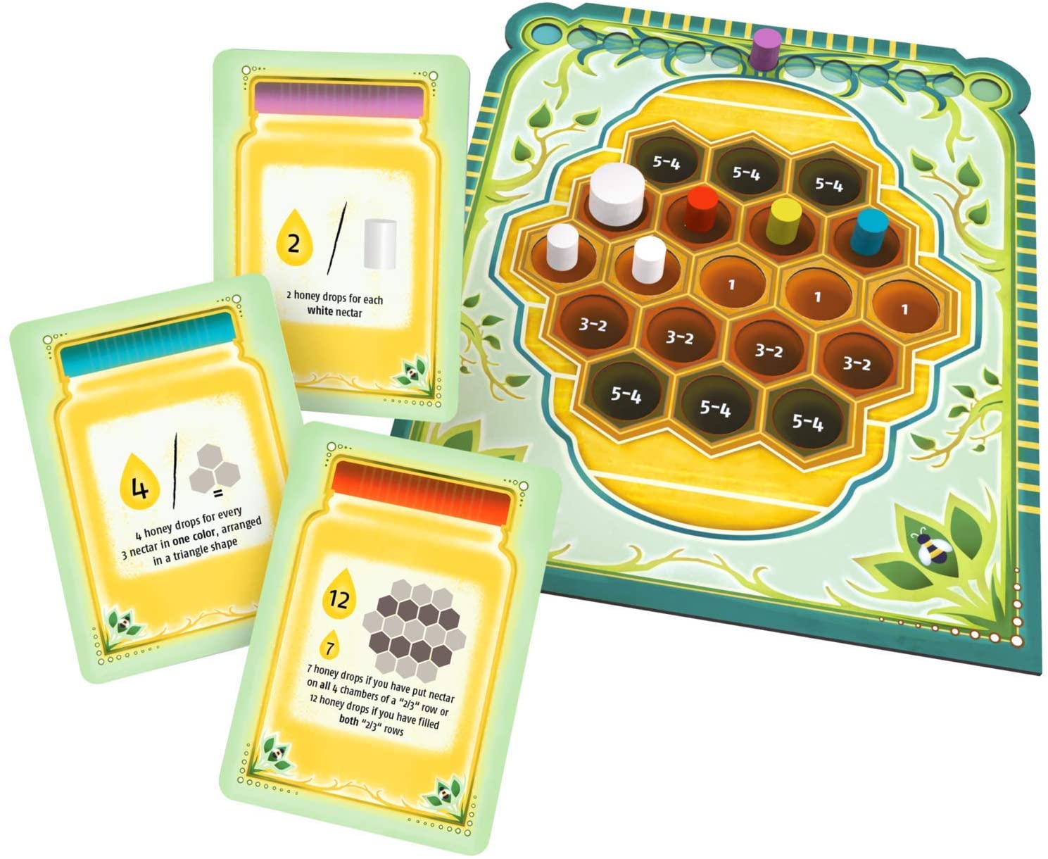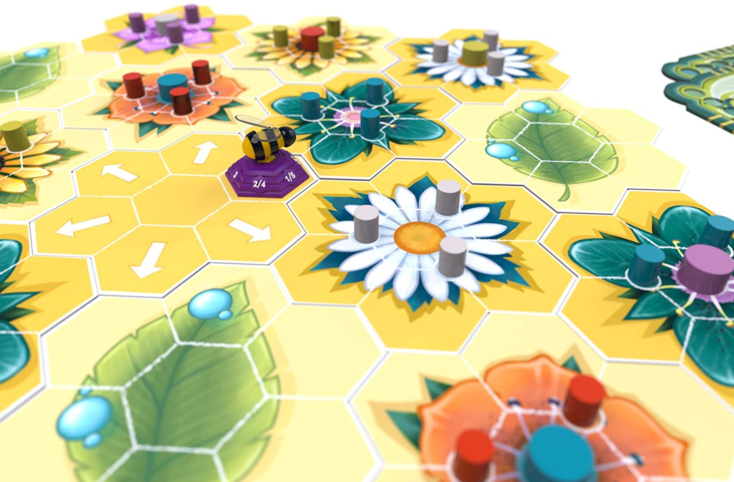 In Beez, players compete to optimize their flight plans to secure nectar for their hive. Be careful of the other bees as you will compete with them over a set of public and private scoring goals. The challenge in planning and storing the nectar will make your brain buzz!