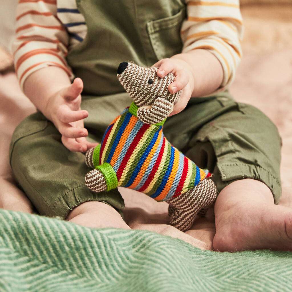 Dieses süße kleine Stricktier verfügt außerdem über eine sanfte Rassel. Ein tolles Geschenk für ein neugeborenes Baby (oder für alle Dackel-Fans!)