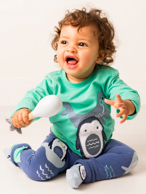 Blade & Rose Arctic Friends Top – auffällig, leuchtend und lustig! Dieses wunderschöne grüne Top hat ein süßes arktisches Design mit einer Robbe und einem flauschigen Pinguin.