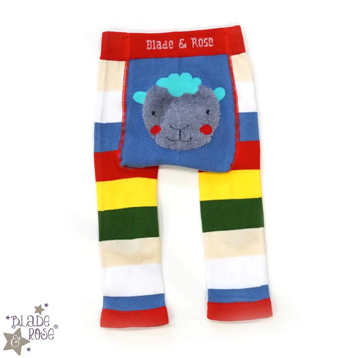Blade & Rose Bright Sheep Leggings – auffällig, leuchtend und lustig! Diese tollen Leggings sind mehrfarbig gestreift und haben ein wunderschönes, flauschiges Schaf auf dem Po.
