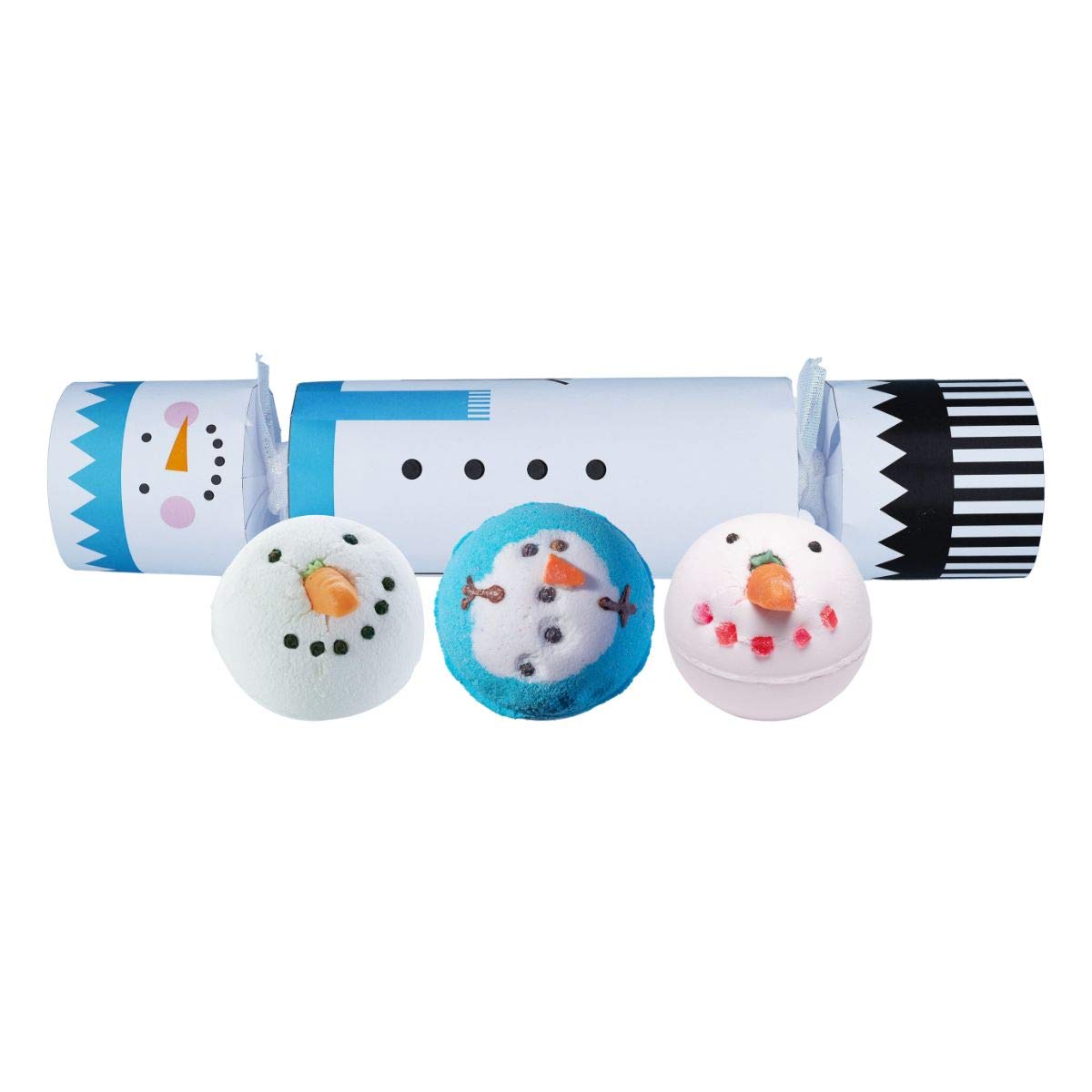 Bomb Cosmetics Frosty The Snowman Cracker – ein wunderschöner Weihnachtscracker in Form eines fröhlichen Schneemanns, gefüllt mit Badebombern.