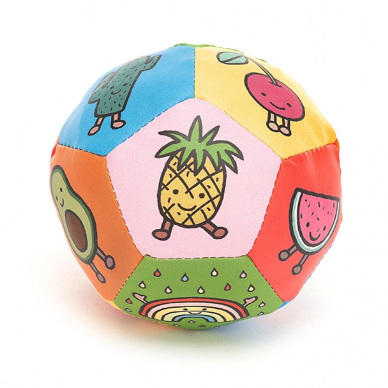 Jellycat Amuseable Boing Ball ist ein dicker, gepolsterter, bunter Ball mit einer ganzen Parade farbenfroher Amuseable-Freunde von Kirschen über Beeren bis hin zu Wassermelonen und Regenbogen.