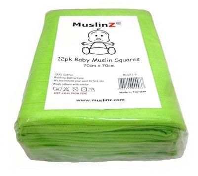 Dieses 12er-Pack Musselintücher (Premium-Qualitätsmarke) in Grün besteht aus 100 % Baumwolle. Diese hochwertigen Musselins sind maschinenwaschbar und werden mit jeder Wäsche besser und weicher.