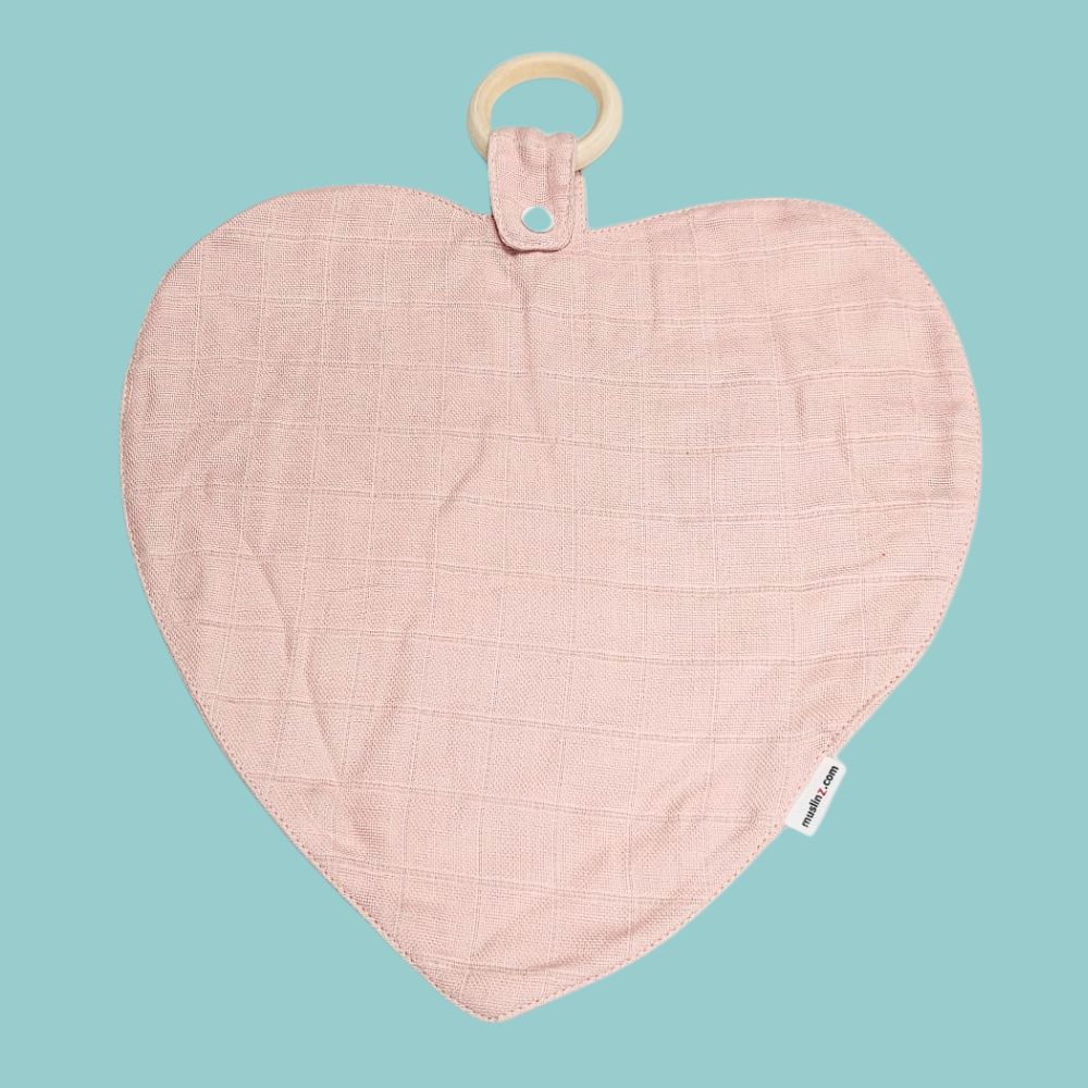 Discover the Mini Muzi, crafted from 100% premium cotton and certified to the Oeko-Tex Standard 100 for safety and quality. Designed to be ultra-absorbent, breathable, and exceptionally soft, it’s gentle on delicate baby's skin. The adorable heart-shaped design with secure popper fastening comes on a handy wooden ring - perfect for out-and-about.
