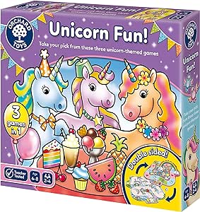 Orchard Toys Unicorn Fun!-Spiel – Drei lustige Spiele mit Einhorn-Thema in einer Box!