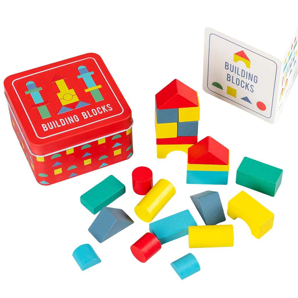 Dieses Set mit 24 Holzklötzen ist in verschiedenen Formen, Größen und Farben erhältlich und eignet sich perfekt für die Kleinen, um ihre motorischen Fähigkeiten spielerisch zu verbessern. Die Metalldose dient zur praktischen Aufbewahrung oder für Spielabenteuer unterwegs!