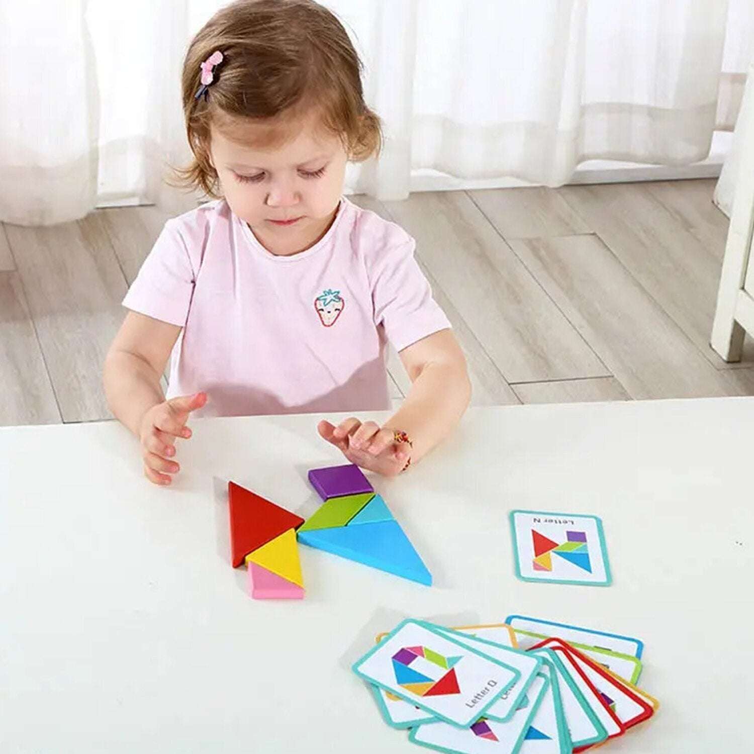 Tooky Toy Tangram-Spielset – erstellen Sie mit diesem farbenfrohen Puzzle-Set verschiedene Zahlen, Buchstaben und Kreaturen.