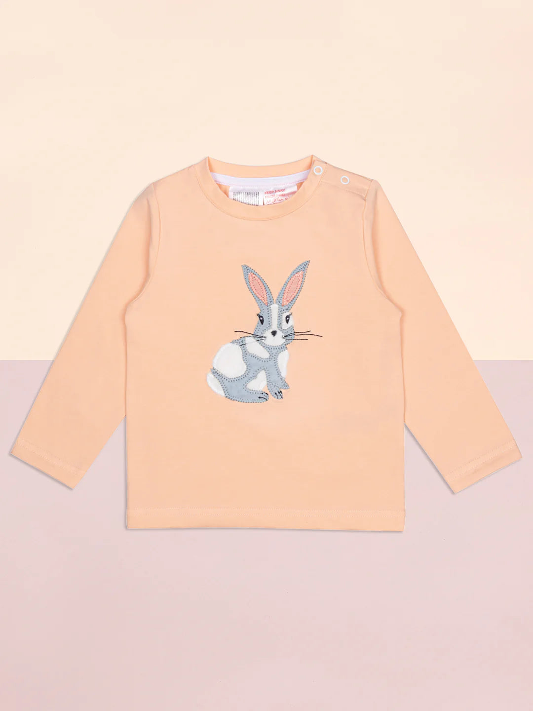 Haut Mollie Rose la Lapine de Blade & Rose : audacieux, lumineux et amusant ! Ce magnifique haut couleur pêche est orné d'un appliqué lapin tout doux.