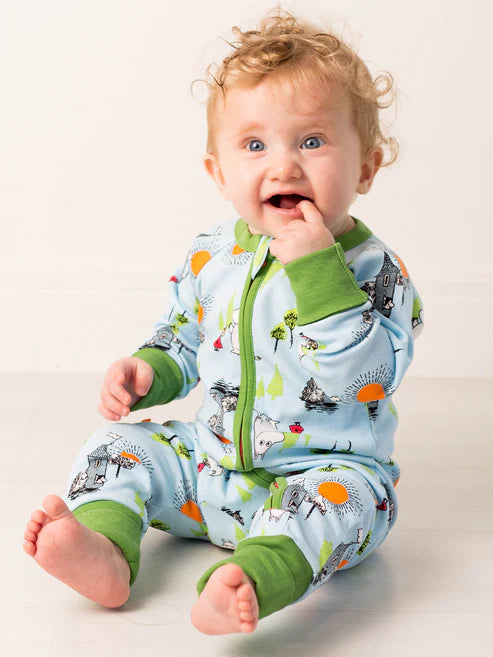 Combinaison zippée Moomin Blade & Rose : audacieuse, colorée et amusante ! Cette superbe combinaison bleu clair et verte arbore un motif Moomins™ « Libre à explorer ».