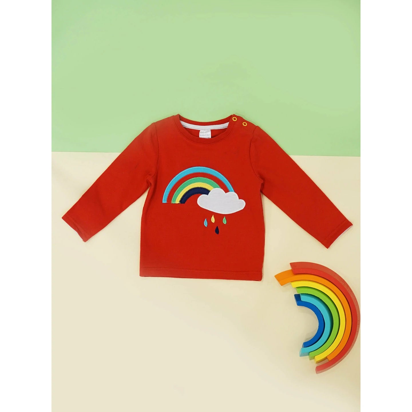 Blade & Rose Weather Top- bold, bright and fun! This gorgeous bright red top features a rainbow stitched design and a white fluffy cloud with multicoloured droplets.