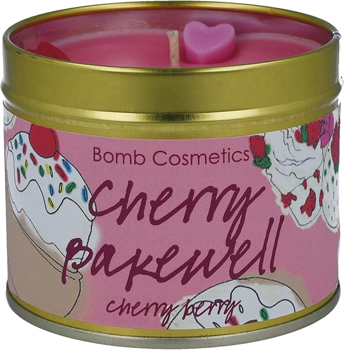 This Cherry Bakewell Tin Candle by Bomb Cosmetics is created using high quality essential oils and is has a delicious cherry almond spice scent.