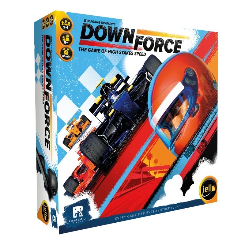 Restored by Rob Daviau from the 1996 Spiel des Jahres recommended game “Top Race”, Downforce puts players behind the wheel of cars with a different Power each.