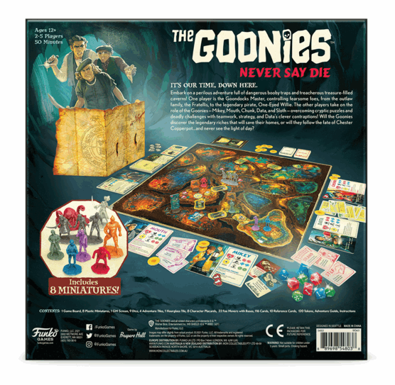 The game features nine adventures so that players can immerse themselves in the movie as well as brand new stories, and it includes eight sculpted miniatures of Mikey, Mouth, Chunk, Data, Sloth, the Giant Octopus, the Fratellis, and even One-Eyed Willie himself.
