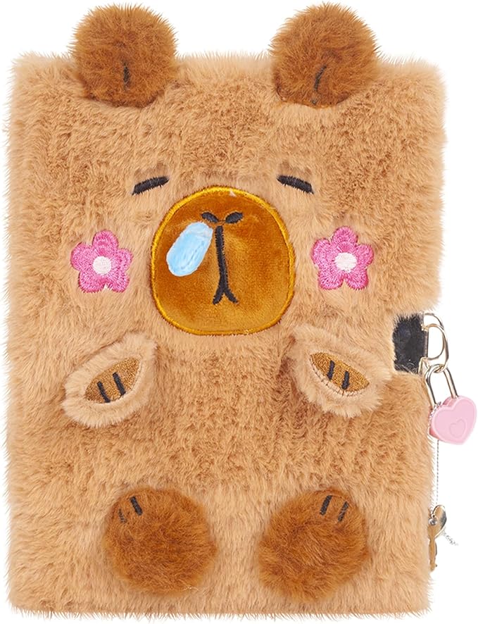 Inside, there are over 160 lined pages, giving children plenty of space to write, draw, and express their creativity. A super-cute baby capybara plush toy is tucked into the front pocket, adding an extra element of fun and making this diary a truly special keepsake.