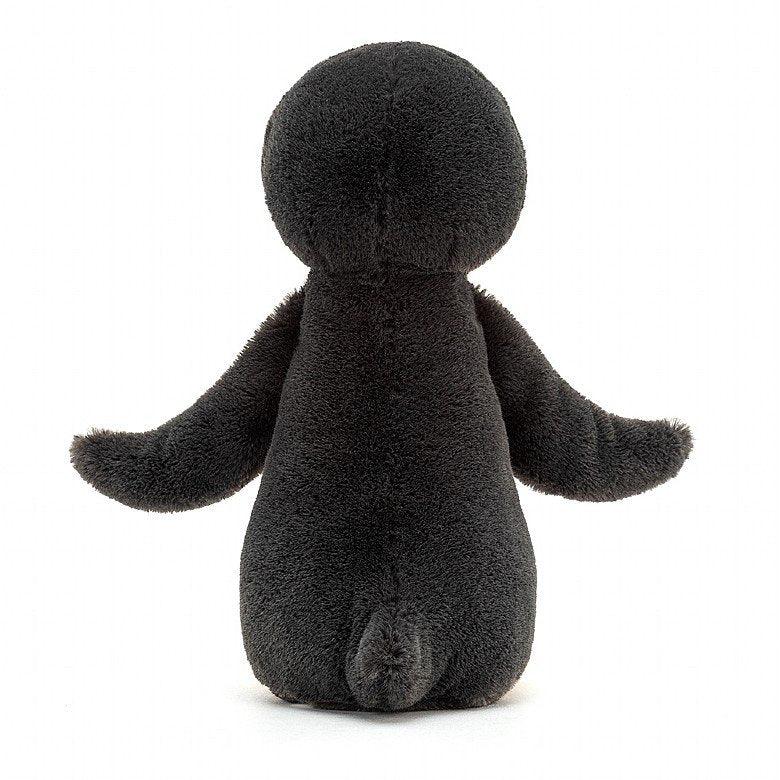 This soft bashful penguin in medium has gorgeous charcoal fur and a cute creamy tuxedo tummy.