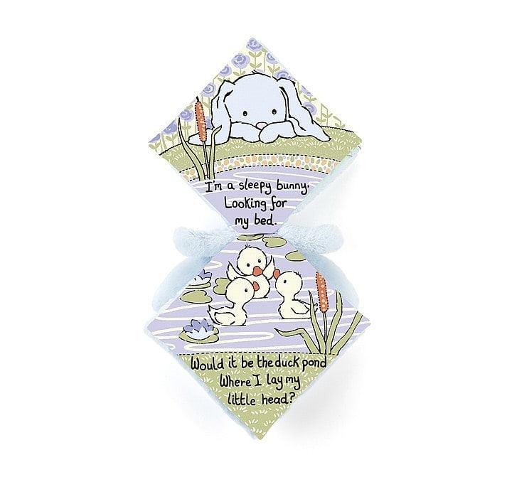 The soft fabric pages tell a story of a charming little fellow who's looking for a place to get comfy and have a nap. Made from the softest pale blue material, the rabbit has long floppy ears and sweet nose making it a special baby gift. (approx size 15cm)