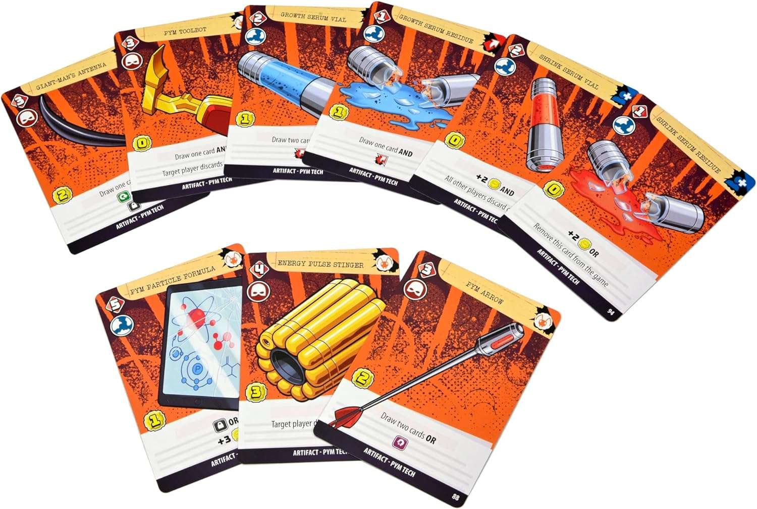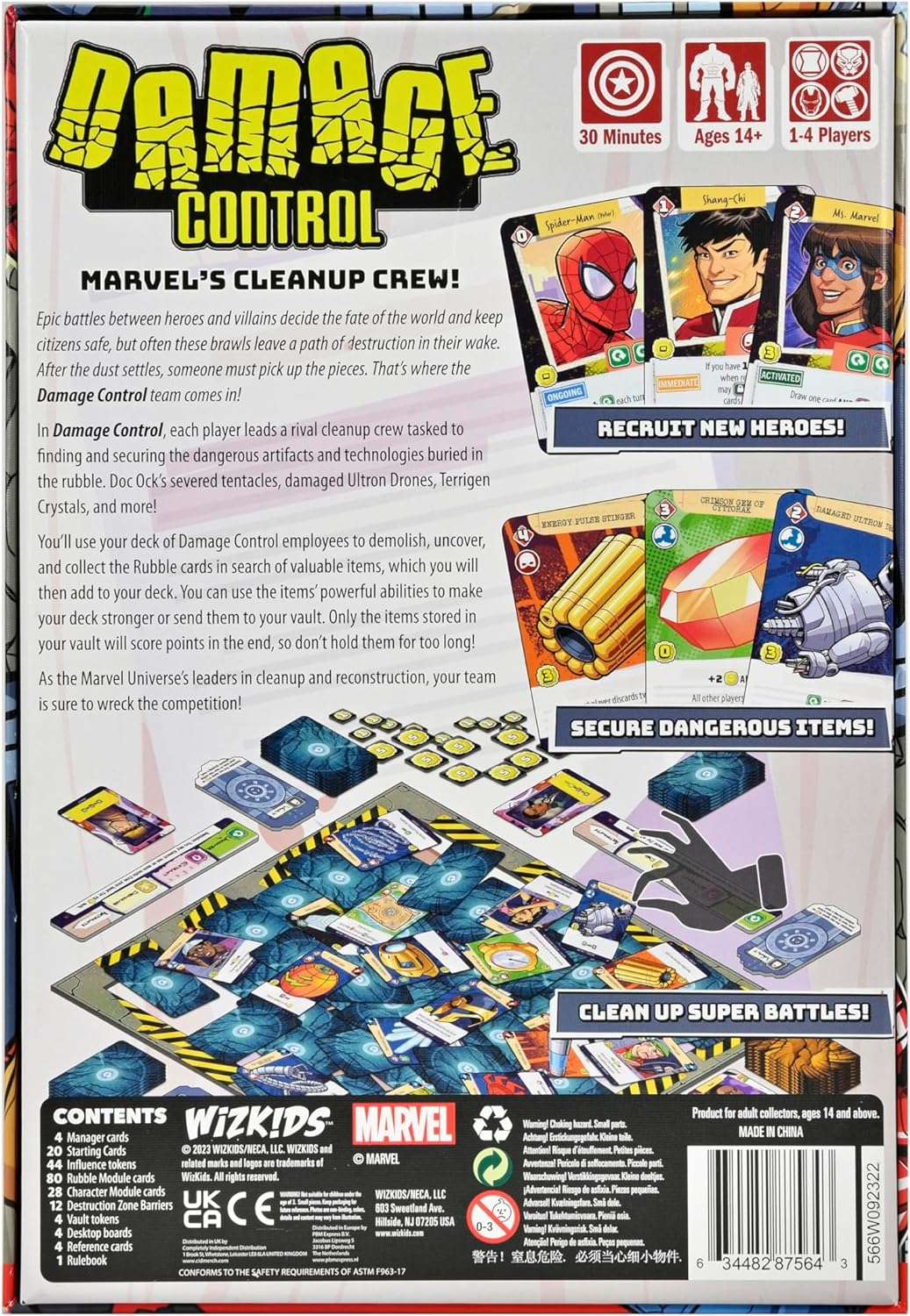 Heroes such as Captain America, Shang-Chi, Black Widow and more will appear in the form of the Character Deck. These heroes provide effects and victory points to the Damage Control teams that manage to enlist their help. The game also features four modules: Mighty Asgard, Mystical Manipulation, Pym Tech, and Vibranium Synthesis. For each game, you’ll pick two modules to mix into the standard Rubble and Character decks, creating a variety of stories, strategies, and gameplay options!
