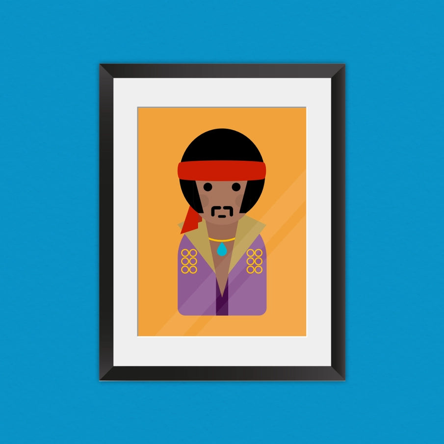 Munchquin Jimi Hendrix Inspired Art Print - a quirky and fun print of the legendary artist Jimi Hendrix.
