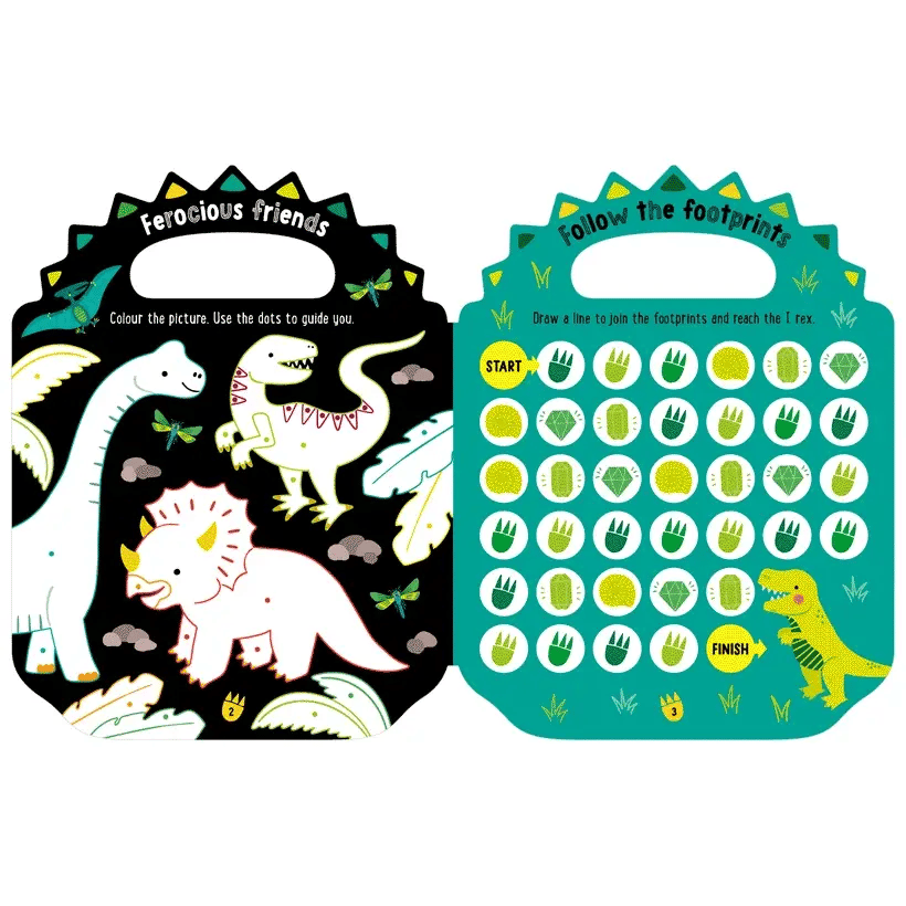 Step into a roar-some world of dinosaurs with My Green and Scaly Dinosaur Activity Book, packed with fun activities and shiny foiled stickers kids will love. Perfect for young dinosaur fans, this engaging activity book keeps children entertained while supporting creativity, counting, and problem-solving skills.