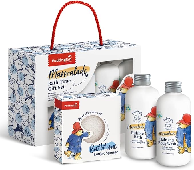 Paddington Bear Marmalade Bath Time Gift Set  - a gorgeous gift set featuring Paddington Bear Hair and Body Wash, Bubble Bath and a lovely Konjac Sponge - all packaged in a fun gift box.