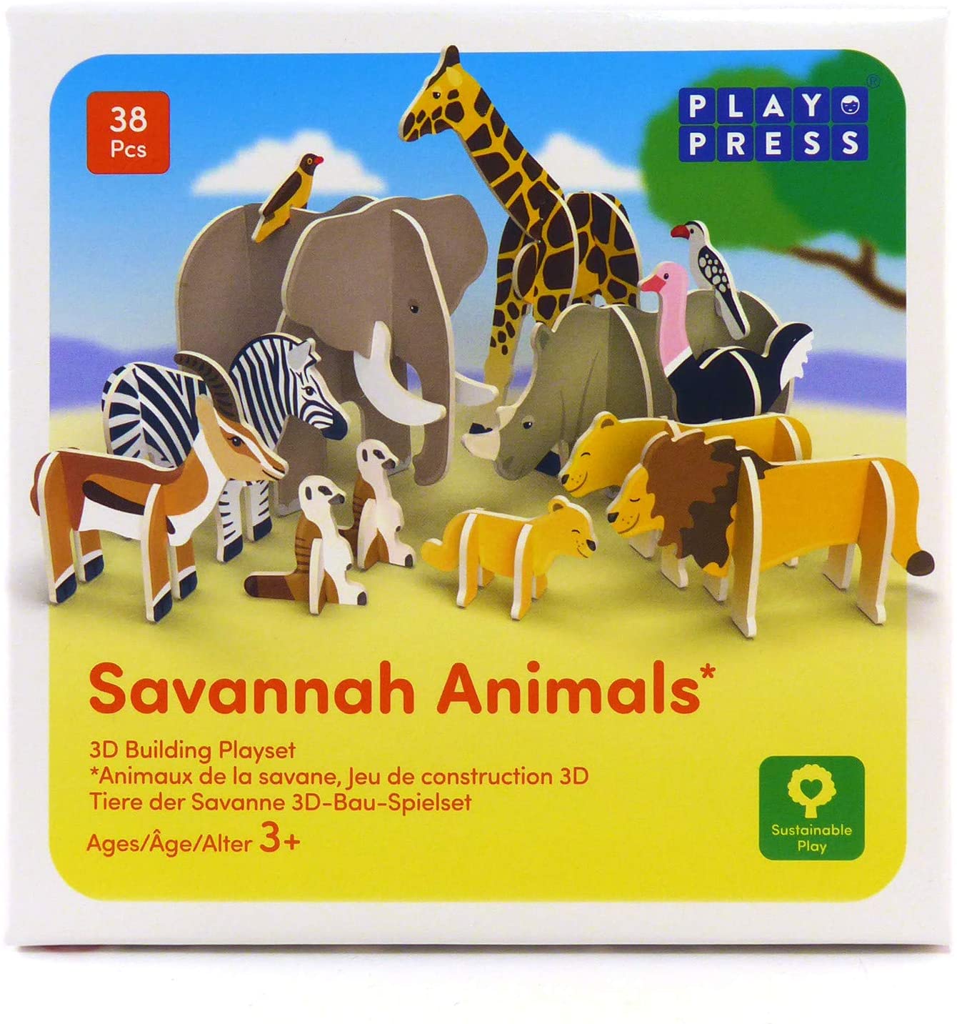 Savannah Animals Eco-Friendly Build and Play Set - a brilliant pop out, build and play 3D safari set!