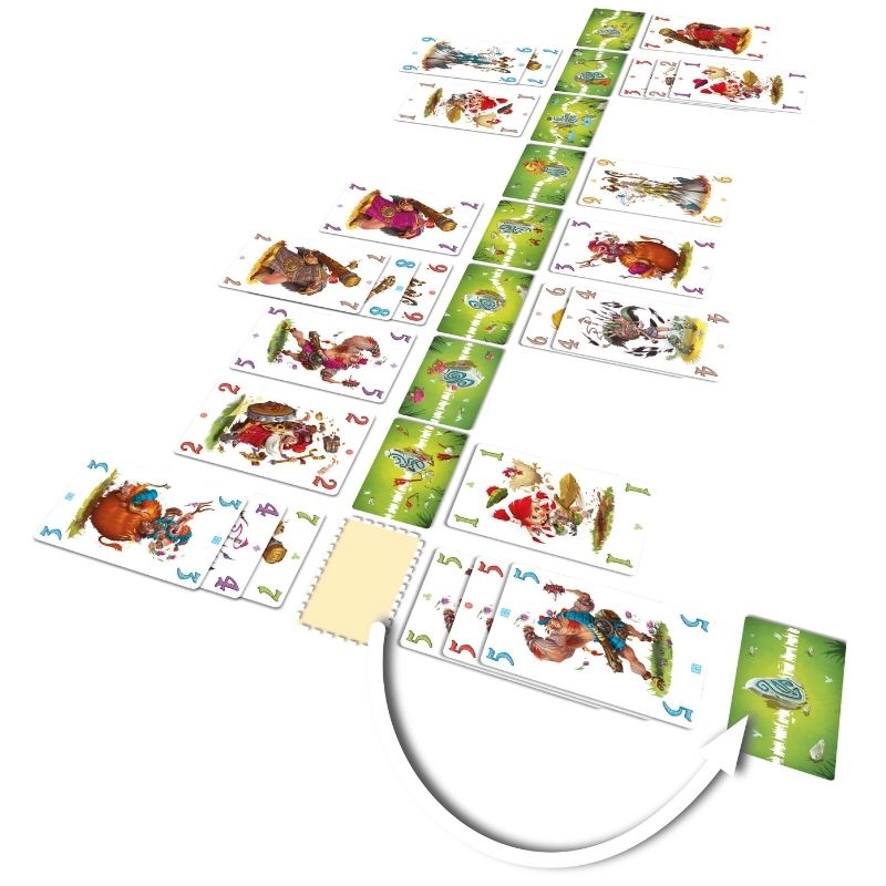 Create the best combat formations using combinations of colours, numbers or both to defend your village. The player with the strongest combination has their border stone moved into the opposing camp. Be watchful of your opponent’s tactics - the first player with three adjacent stones pushed over will claim victory for their village!