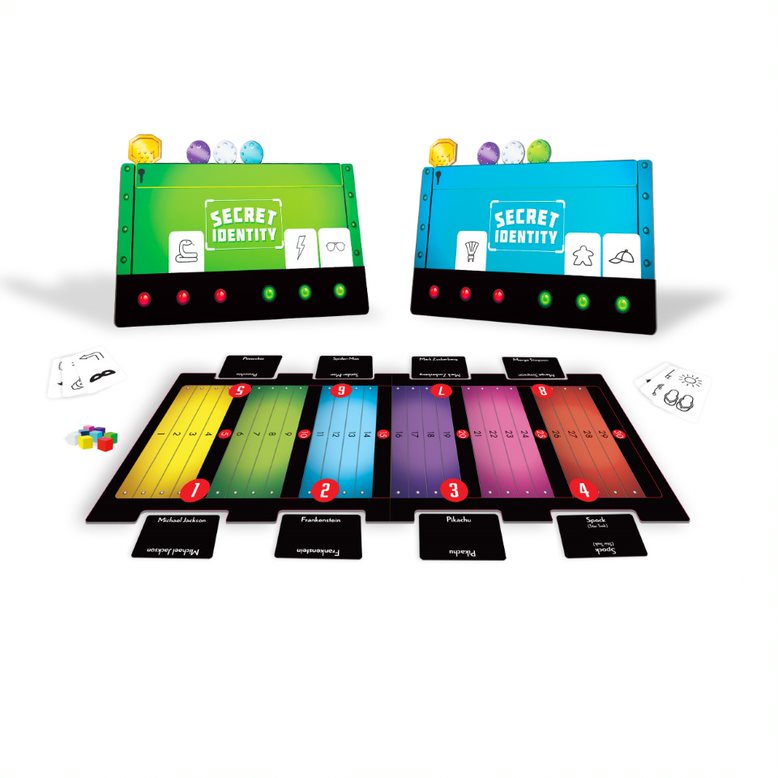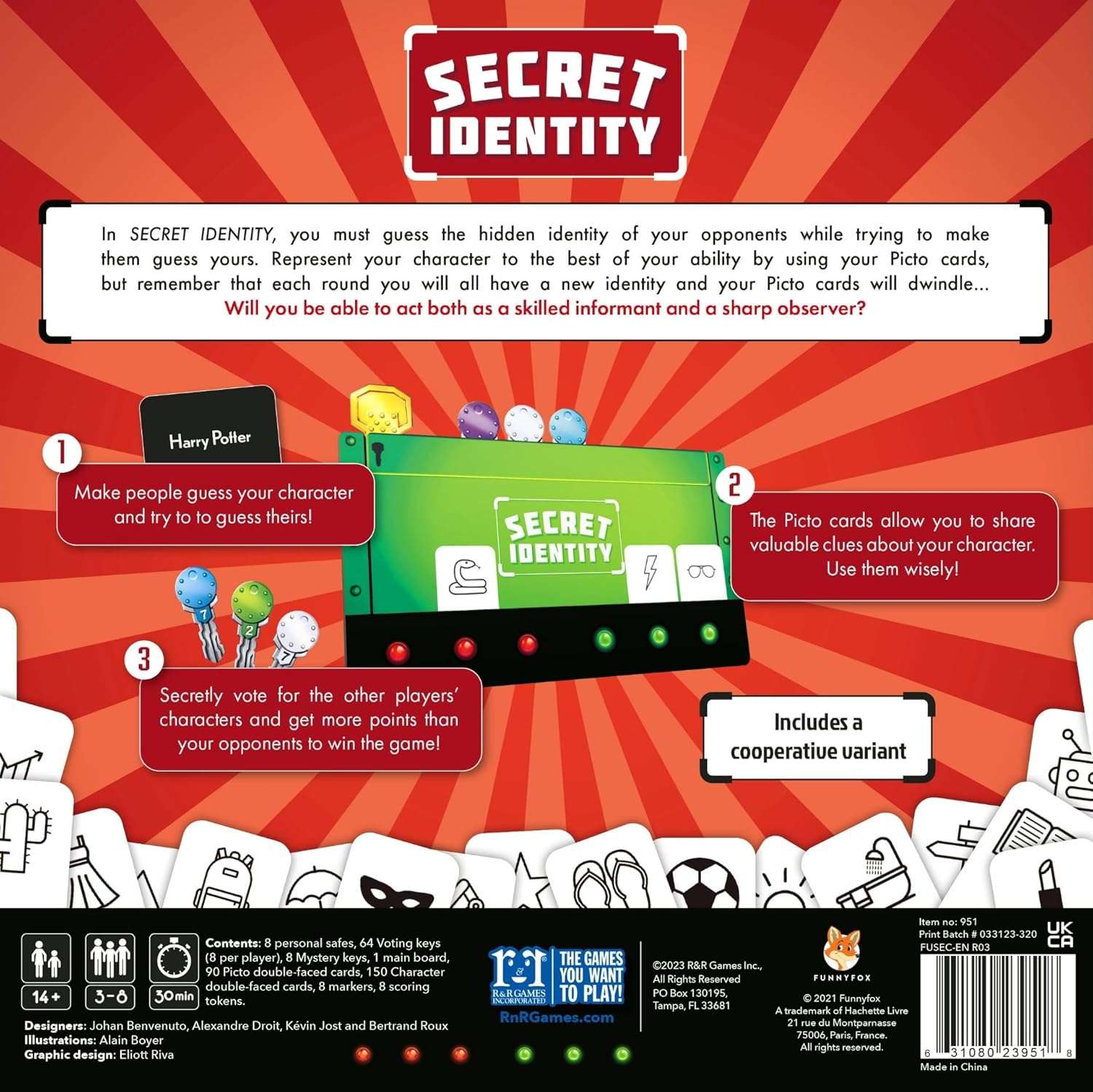 In Secret Identity, take a chance and uncover the hidden identities of your opponents while concealing your own. Receive a key card with your character among eight others on the table, then use double-sided "picto" cards to give clues and guess others' identities. As new characters are introduced, strategically use your limited supply of picto cards to continue gaining points. The top scorer after four rounds wins. Can you handle the role of informant and sharp observer?