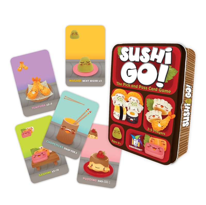 Sushi Go! is a fast-playing card game, where the goal is to grab the best combination of sushi dishes as they whiz by!