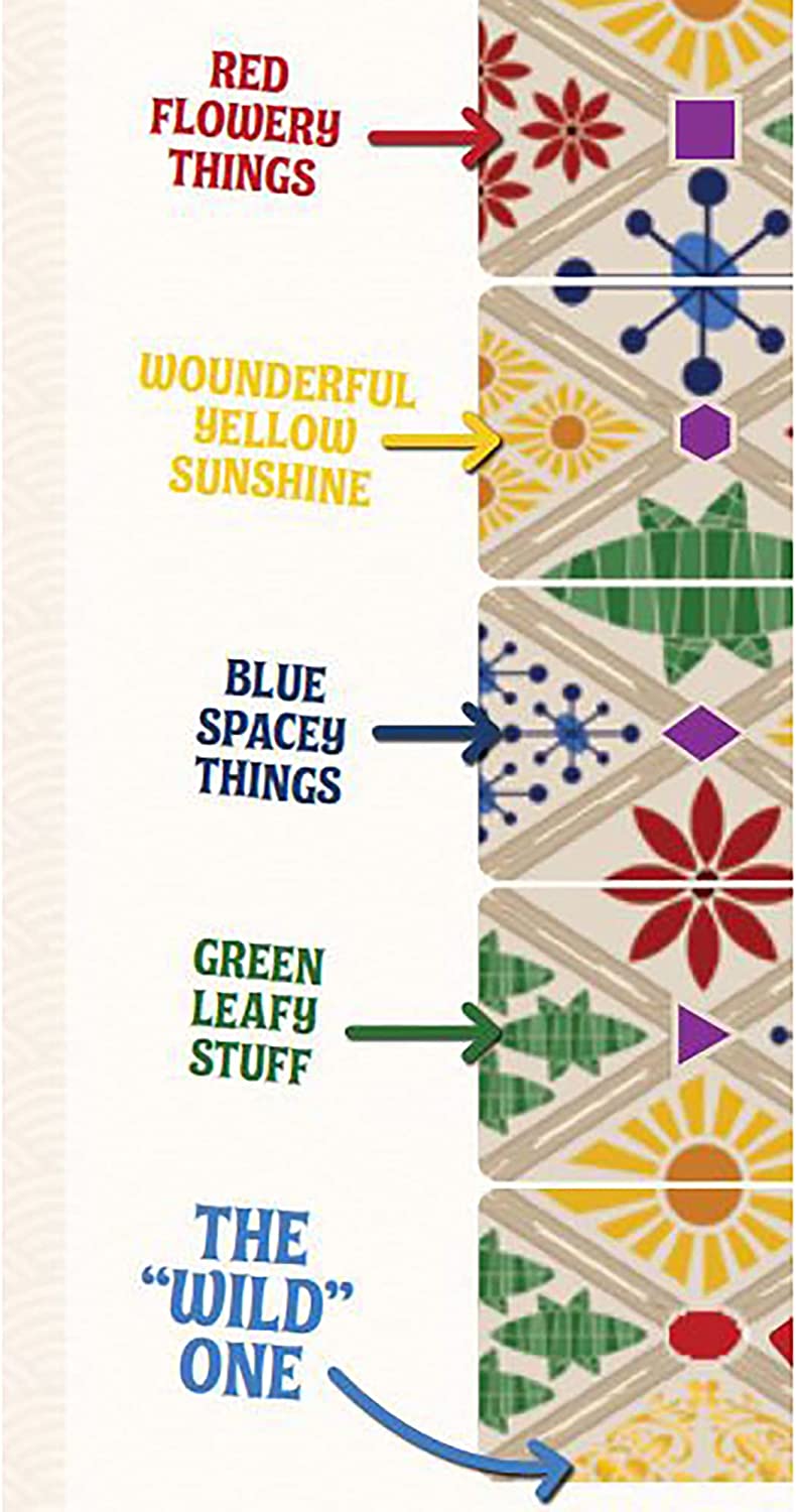 That Old Wallpaper is a game of drafting stacks of wallpaper cards and piecing them together to most closely re-create the patterns from your memories. The player who matches the most shapes and colors, collects the most unique mementos, and puts together the highest-scoring section of wallpaper wins the game!