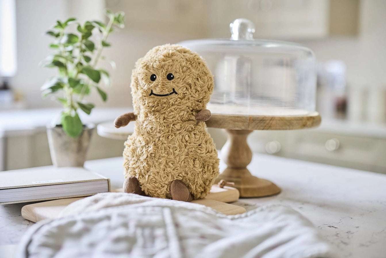 Warmies Peanut - your new snuggly sidekick! This adorable, heatable plush toy warms up in the microwave to deliver hours of cozy comfort and soothing lavender scent.