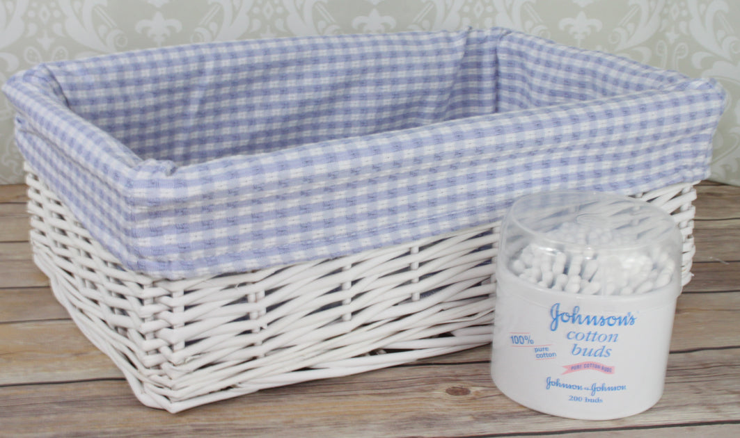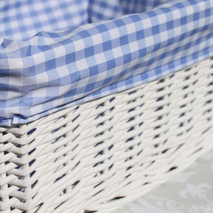 White Wicker Basket with Blue Gingham Lining - Medium