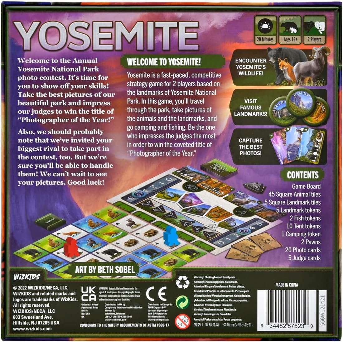 It's a tense back and forth as you and your opponent maneuver for the best positions and the best photos, try to impress the judges, and fight over the best campsites and landmarks. With strategic movement and a variety of ways to score, Yosemite is fast and challenging, keeping you and your opponent on your toes as you explore the beautiful park.