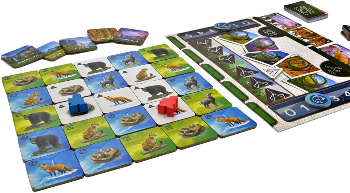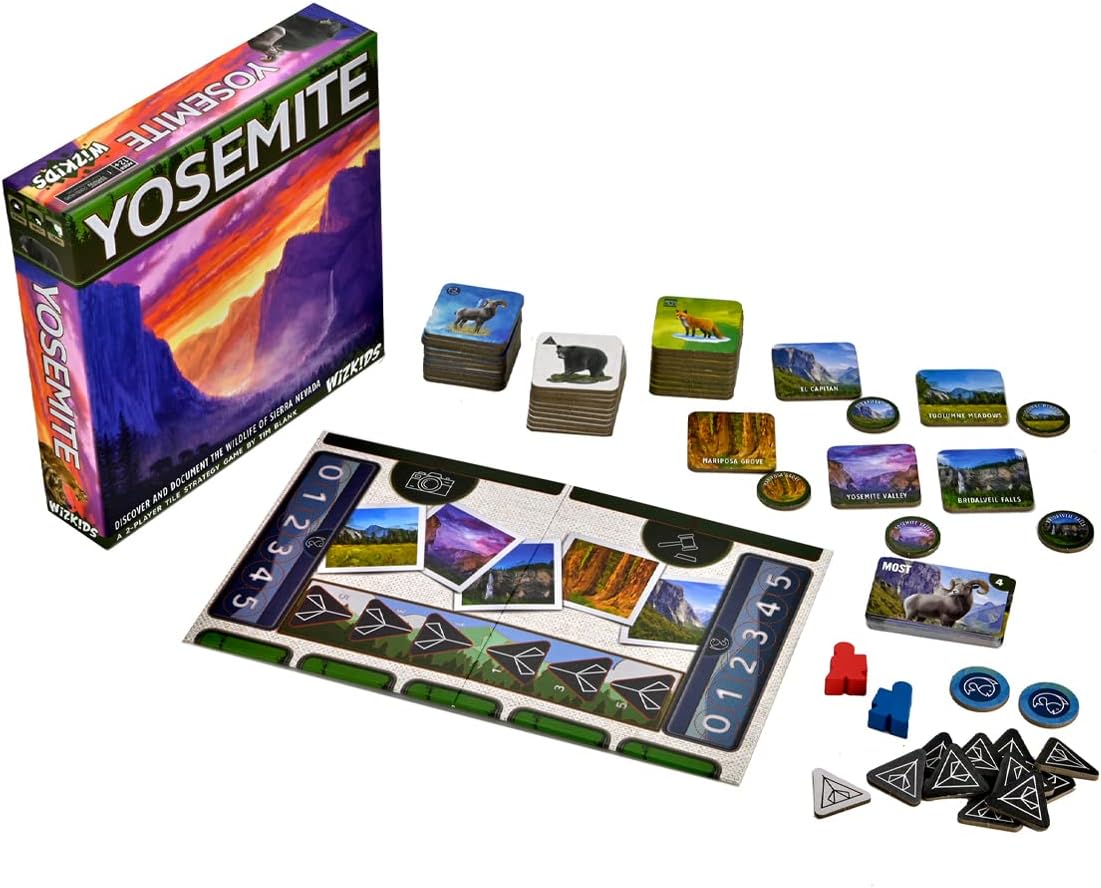 Yosemite is a fast-paced, competitive strategy game for two players based on the landmarks of Yosemite National Park. In this game, you’ll travel through the park, take pictures of the animals and the landmarks, and go camping and fishing. Be the one who impresses the judges the most (scores the most points) in order to win the coveted title of “Photographer of the Year.”
