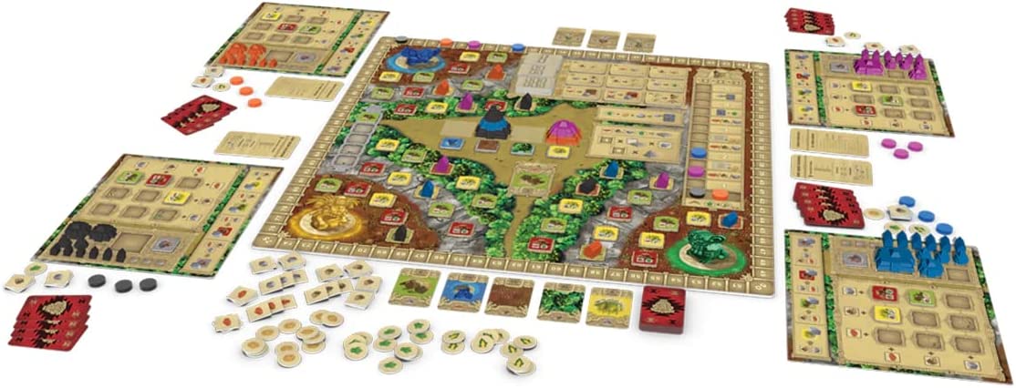 In a game of Zapotec, you build temples, cornfields and villages in the three valleys surrounding the capital to generate resources needed for building pyramids, making sacrifices to the gods, and performing rituals.